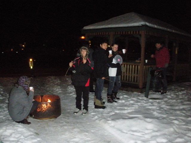 We toasted marshmallows, drank hot chocolate, |
